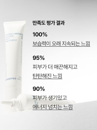 눈가 미간 이마 눈밑 팔자주름, 탄력, 보습, 영양 토탈 안티에이징을 위한 이니스프리 링클 사이언스 스팟 트리트먼트. 오메가 오일과 미역 발효 추출물로 피부 에너지를 공급하고 쫀득한 제형이 주름 사이에 밀착해 탄탄한 주름 탄력 케어! 주름개선기능성을 인정받은 기능성 안티에이징 링클 크림